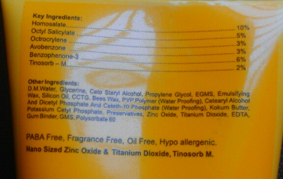 The sunscreen is light weight and not at all heavy on skin. It gets absorbed easily and quickly in the skin. This point my husband has specially told me to mention as he like the fact that it gets absorbed as compared to other sunscreens he has used.