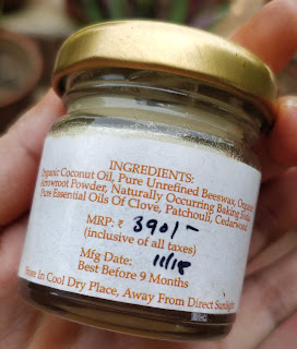 Packaging- It comes in a tiny transparent glass jar which is tightly secured with a screw cap golden in color. Also it comes with an information card which has everything mentioned in it about the salve.